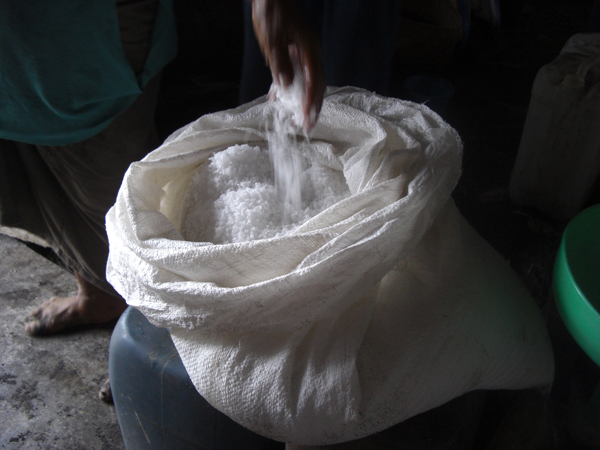 炎天下の中、大変な重労働の末出来上がった塩。