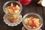 ②1を鍋に入れ、グラニュー糖(1の重量の20%)とレモン汁(1の重量の5%)も鍋に入れ、軽く混ぜ合わせる。20分~1晩ほどおいてから、中火にかけ、紅玉がひたるほど水分が出てきたら強火にして煮る。水分が少なくなり、とろみがついたら出来上がり。
