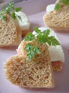 - 普通の白い食パンと全粒粉入りのブラウンで2色使いにしていますが、サンドイッチ用の食パンの代わりにミニクロワッサンや、プチバゲットを使っても良いです。 果物柿や洋ナシの他、マンゴーやキュウイ、メロン、いちじくなどお好みで。