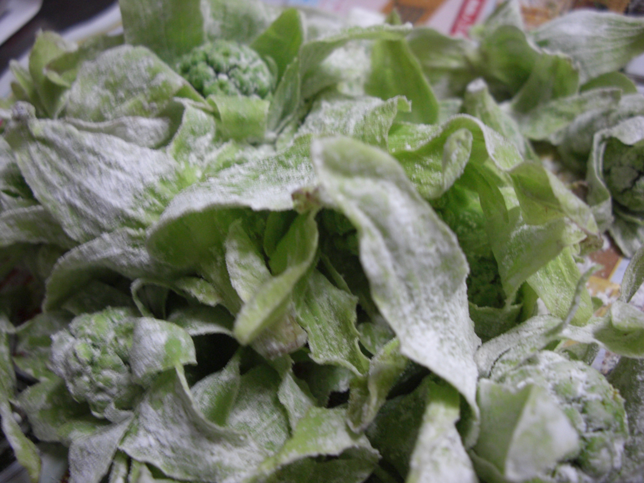 - 衣種は少しゆるめがポイント。粉によって水の分量が変わりますので、少し調整して下さいね。予め薄い粉を振っておくと、緩めの衣種が、付き易くなります。