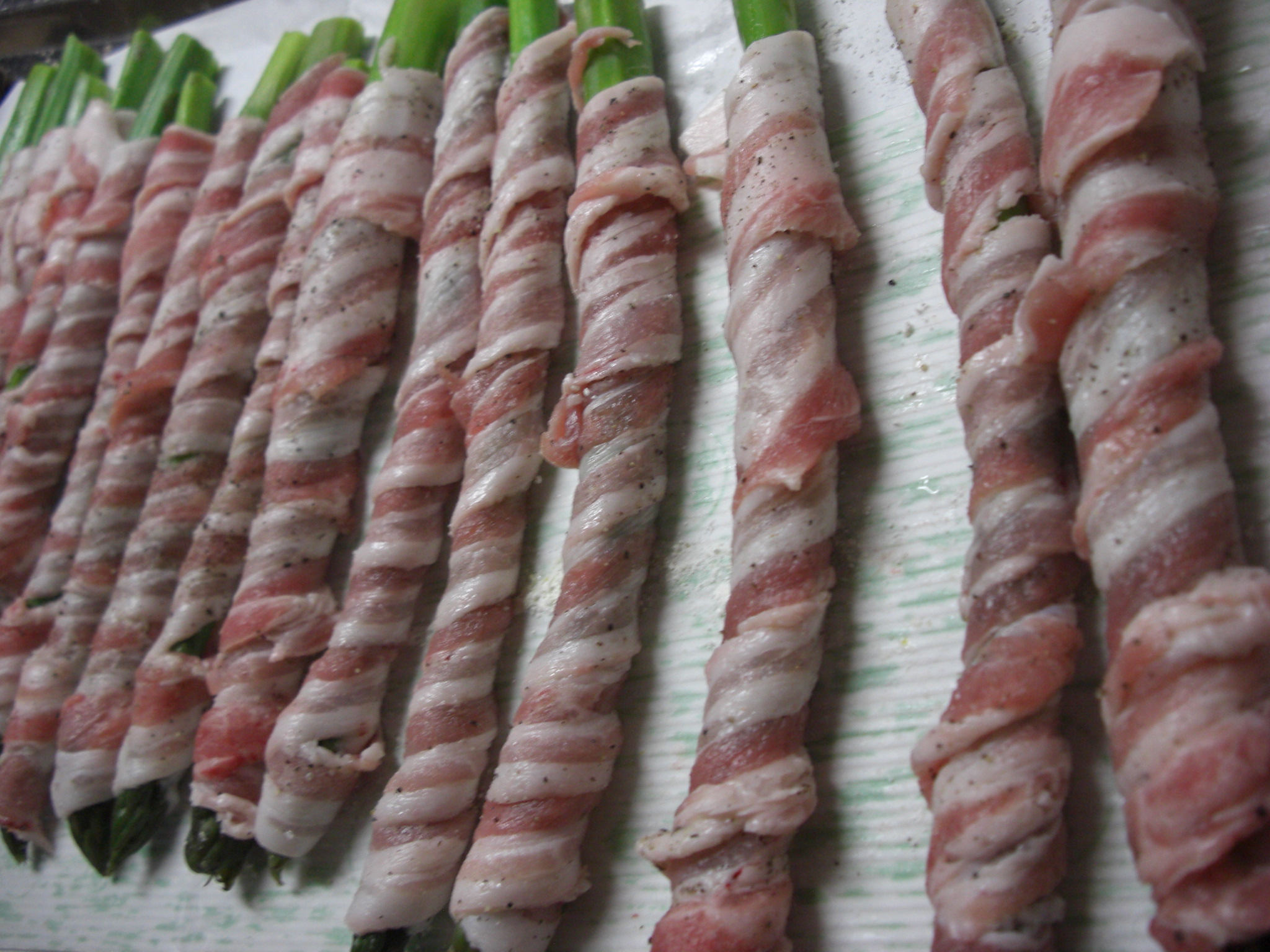 - 切らずにこのままダイナミックに食べても・・・。 アスパラが細い場合は、2~3本束にして、お肉で巻いてください。