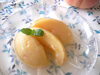 - 汁に浸った状態で煮ます。桃が顔を出したまま煮ると出ている部分だけ 変色することがあるので上記で煮汁が足りなければ割合を同様に(水: 汁に浸った状態で煮ます。レモン汁の分量はお好みで。