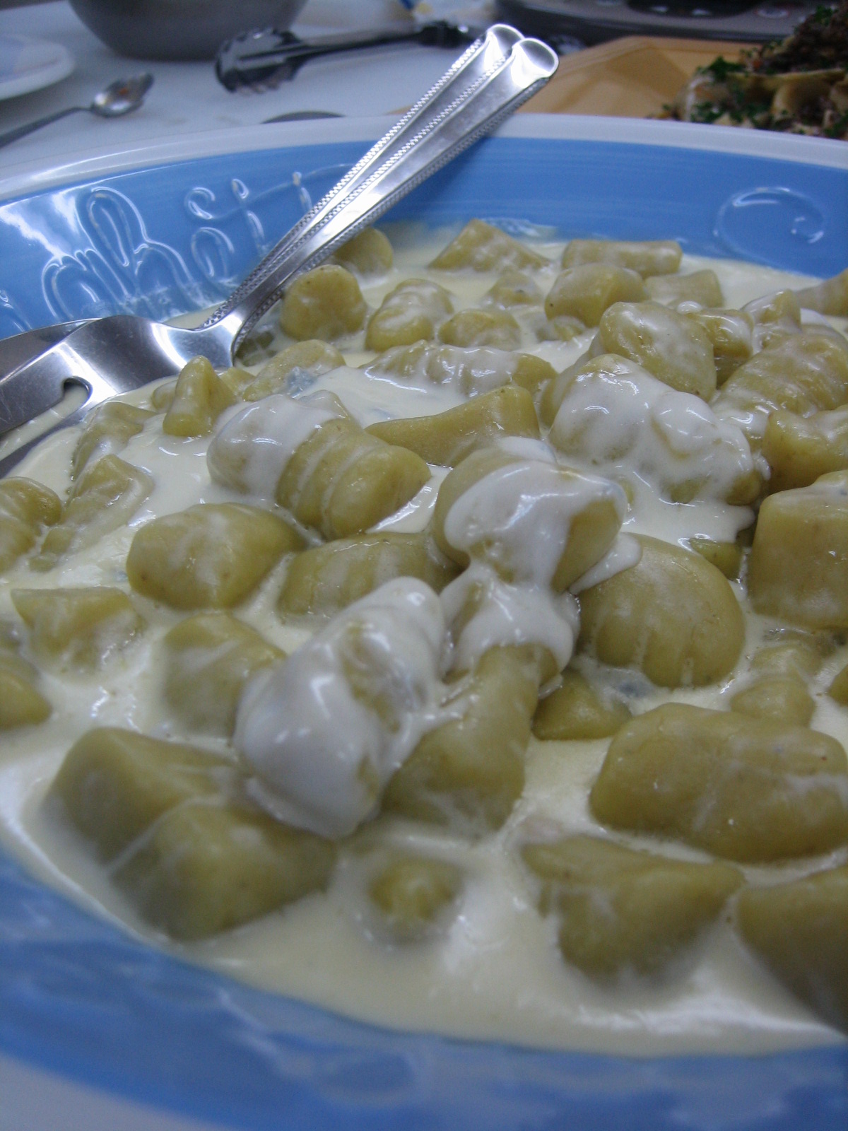スプーン等で、皮から実をくり抜きボールに入れる。かぼちゃが熱いうちに2cm角に切ったクリームチーズを加え、マッシャーやへらで細かく潰し滑らかなペースト状にする。砂糖と塩を加え混ぜる。