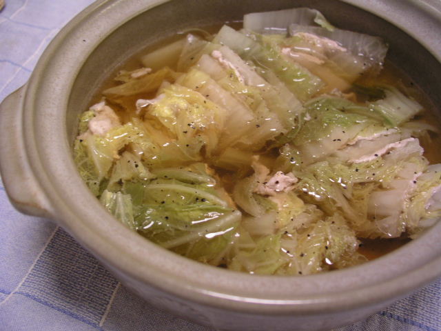白菜が柔らかくなったら、塩・みりん・しょうゆ(少々)で味を調えます。