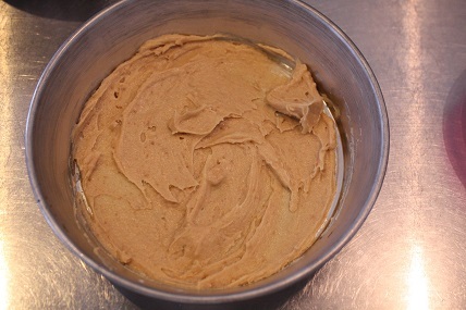 牛乳を入れて混ぜたら、薄力粉とベーキングパウダーを一緒にふるい入れてゴムベラでさっくりと混ぜる。マンケ型に流し入れて平らにして180℃に予熱をしたオーブンで30~35分ほど焼く。