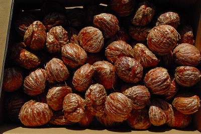 渋皮のついた栗を5,6分揚げ、油をきります。