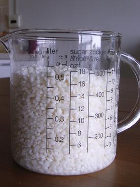 - 洗ったお米をカップで量って、同量のだし(水)でもいい状態に炊けます。