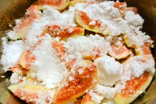 中火にかけて砂糖が全体にいきわたったらレモンをあわせる。