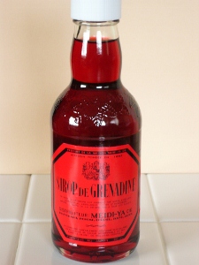 ざくろのシロップです。色付けするのに重宝しています。写真は明治屋の「マイグレナデンシロップ」という商品で300ml入りです。お酒屋さんや明治屋、ネットで購入できます。特にメーカーは限定しておりませんがメーカーによって色が少し異なります。