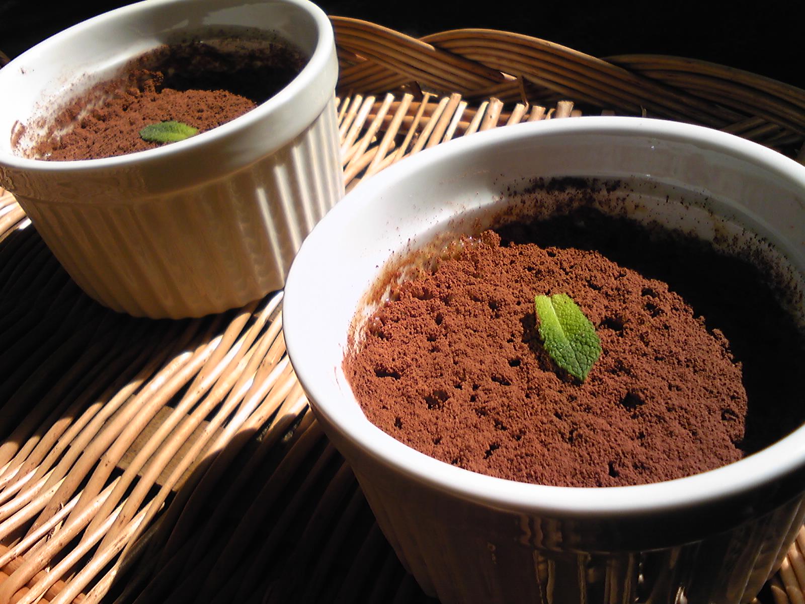 冷蔵庫で3~5時間冷やして食べる直前に茶漉しでココアを振りかけミントを飾る。