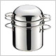 もちろん調理性能も抜群。通常の加熱調理に加えて鍋でケーキを焼く(!)などして鍋自体をオーブンのように使う方法と、オーブンに鍋を入れる方法、2種類のオーブン調理に対応しています。アルミニウムをステンレスで挟んだ鍋本体は熱伝導に優れ、定温定圧に近い状態での調理が可能。また本体とフタがぴったりと密着する構造が水蒸気膜を生成し、熱や水分を逃さず、鍋の内部を密閉状態に保ちます。これにより、水や油を必要最小限に抑える、無水・無油・余熱調理が可能になるのです。ポイントは、火加減。煮物なら中火で加熱し、沸騰したら弱火で煮込んで。ケーキを焼くなら(型不使用)、トロ火でじっくり焼き上げて。オプションの蒸し器やパスタ用中子を併用すれば、さらに用途が広がります。