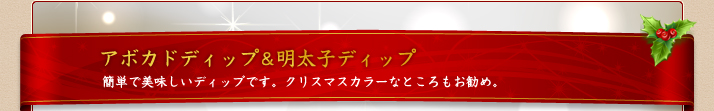 - ⑤ 器に盛り付け、アボカドディップには玉ねぎ、明太子ディップにはレモンの薄切りを飾る。